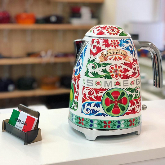 Дополнительная информация:- Электрический чайник Smeg созданный в сотрудничестве с дизайнерами Dolce&Gabbana. На корпусе прибора расцвели золотые лимоны, распустились цветки опунции и зацвели яркие вишни. Всё это элементы сицилийского изобразительного искусства, обрамлённого треугольными узорами под названием crocchi