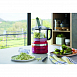 Комплектация:- Многофункциональное лезвие- Насадка для теста- Двусторонний диск для нарезки ломтиками средней толщины (4 мм)/шинковки- Диск только для нарезки ломтиками толщиной 6 мм- Рабочая чаша объемом 1,7 л из пластика без бисфенола А с приводным стержнем- Откидная крышка с падающей трубкой «2 в 1» и 2 – составной толкушкой- Адаптер привода- Место для хранения насадок