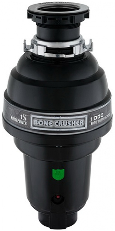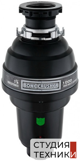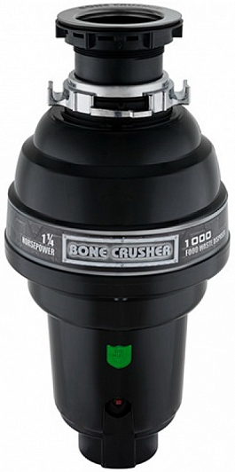 Особенности:- Защита от перегрузок: есть- Корпус из высокопрочного вязкого композита (легкий и надежный)- Дробильный диск и кулачки - нержавеющая сталь- Усовершенствованное крепление к раковине с помощью защёлки обеспечивает удобство установки. Master Mounting System - легкая установка (просто и быстро установить самому без специальных инструментов)- Bio Shield - запатентованная технология препятствующая размножению бактерий- Mr. Scrappy в комплекте (очень удобный многофункциональный инструмент 3 в 1 проталкиватель, сливная пробка и скребок для очистки посуды/раковины)- Измельчитель пищевых отходов Bone Crusher 1000 Delux устанавливается под раковиной на месте сифона. Все измельчители предназначены для раковины со стандартным диаметром сливного отверстия 90 мм. Сама раковина может быть из любого материала стальная, искуственный камень и др- Конструкция измельчителя для мойки представляет собой камеру для пищевых отходов с вращающимися кулачками. Никаких ножей и лезвий. Скорость вращения кулачков определяется мощностью электромотора. Попадая в такую камеру, отходы измельчаются в труху (величина частичек не боле 3мм), и смываются потоком воды в канализацию- П<span style="