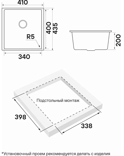 Установка: подстольный монтаж