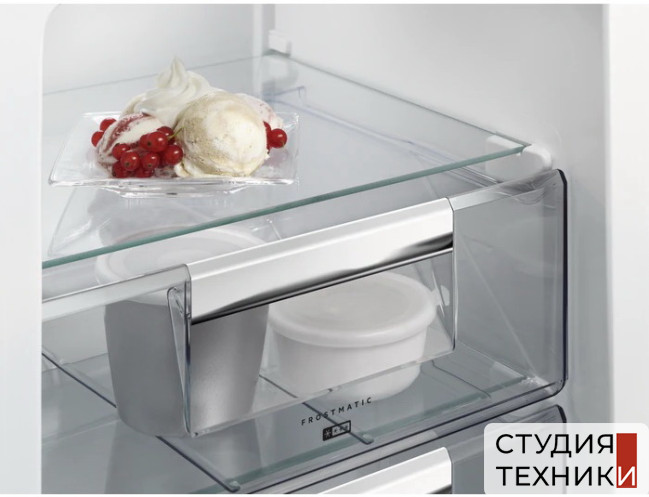 Общие характеристики:- Тип: встраиваемый- Вид: холодильник с морозильником- Количество камер: 2- Количество компрессоров: 1- Разморозка холодильной камеры: автоматическая- Разморозка морозильной камеры: No Frost- Общий полезный объем холодильника: 267 л- Объем холодильной камеры: 195 л- Объем морозильной камеры: 72 л- Цвет: белый- Количество дверей: 2- Дверной упор: справа- Уровень шума: 35 дБ- Климатический класс: SN-N-ST-T- Класс энергетической эффективности: A+- Размеры (ВхШхГ): 178х56х55 см- Размеры ниши для встраивания (ВхШхГ): 177.2х54х54.9 см