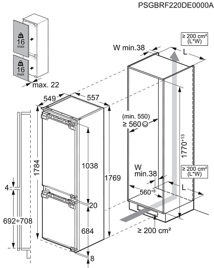 • Встраиваемый холодильник