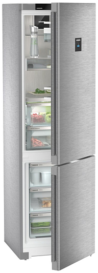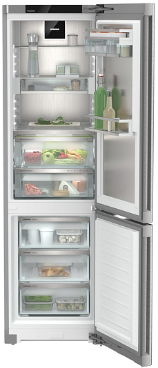 Холодильник Liebherr CBNstd 5783Общие характеристики:- Тип: отдельностоящий- Вид: холодильник с морозильником- Количество камер: 2- Количество компрессоров: 1- Разморозка холодильной камеры: автоматическая- Разморозка морозильной камеры: No Frost- Объём холодильной камеры: 395 л- Полезный объем холодильной камеры: 251 л- Полезный объем морозильной камеры: 94 л- Уровень шума: 36 дБ- Цвет: серебристый- Класс энергетической эффективности: А++- Размеры (ВхШхГ): 201.5х59.7х67.5 см Управление, функции:- Элементы управления: сенсорные- 7-дюймовый сенсорный цветной TFT- дисплейХолодильное отделение:- Освещение: светодиодное- Циркуляционное охлаждение- 3 полки из закаленного стекла, из них 1 регулируемая по высоте- Полка для бутылок над контейнером- Зона свежести для фруктов и овощей: 2- Лоток для яиц- Фильтр из активированного угля- Циркуляционное охлаждение PowerCoolingМорозильная камера:- Время сохранения холода при отключении электроэнергии: 24 ч- Мощность замораживания в сутки: 16 кг- Лоток для льда- Контейнеры выдвижные: 3Дополнительная информация:- Сторона открывания двери: правая, перенавешиваемая- Угол открывания двери 115°- Ролики для транспортировки сзадиБезопасность:- Сигнализация неисправности: акустическая и оптическая- Сигнализация неплотно закрытых дверей: акустическая и оптическая- Защита от детейСтрана изготовитель:- Болгария