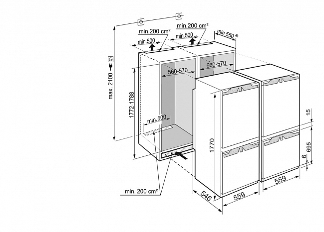 Дополнительная информация:- Сторона открывания двери: SICNd 5153 левая/ ICBNd 5153 правая, перенавешиваемая- Монтаж двери: жесткое крепление- Задняя стенка из нержавеющей стали- Угол открывания двери 115 С- Уплотнение двери: сменное- Выравнивающие планки: 4- Регулируемые по высоте ножки- Вентиляция через мебель