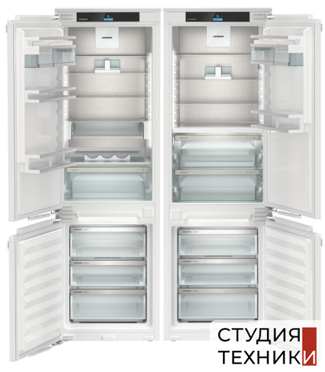 Общие характеристики:- Тип: встраиваемый- Вид: Side by Side (SICNd 5153 / ICBNd 5153)- Количество камер: 4- Количество компрессоров: 2- Разморозка холодильной камеры: автоматическая- Разморозка морозильной камеры: No Frost- Общий объем холодильной камеры: 484 л- Полезный объем холодильной камеры: 364 л- Полезный объем морозильной камеры: 120 л- Полезный объём зоны свежести: 69 л- Уровень шума: 36 дБ- Цвет: белый- Класс энергетической эффективности: А++- Размеры (ВхШхГ): 177х55.9х54.6 см- Размеры ниши для встраивания (ВхШхГ): 177.2-178.8х56-57х55 см Управление, функции:- Элементы управления: сенсорные- Дисплей Touch&Swipe display- Индикация температуры холодильной камеры- SmartDevice беспроводное устройство для управления со смартфона- SmartDeviceBox (возможность дооснащения)- NightMode: ночной режим настраивается через приложение- SabbathMode: выключено всё освещение холодильника, а также все звуковые сигналы, шумы и экран. Режим SabbathMode отключается через 80 часов- Режим «Отпуск»- CleaningMode: при чистке холодильника охлаждение выключается, а освещение остаётся включённым- PartyMode - активируются функция SuperCool для максимального производства льда- Система SuperCool, быстрое охлаждение (настраивается через приложение)- Быстрая заморозка SuperFrost (настраивается через приложение)- IceCubeTimer (настраивается через приложение)- Циркуляционное охлаждение- Регулируемый диапазон температур холодильного отделения от +2 С до +9 С