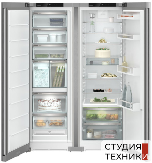 Холодильник Side-by-Side Liebherr XRFsf 5255Общие характеристики:- Тип: отдельностоящий- Вид: холодильник с морозильной камерой- Количество камер: 2- Количество компрессоров: 2- Разморозка холодильной камеры: автоматическое- Разморозка морозильной камеры: автоматическое- Полезный объем холодильной камеры: 377 л- Полезный объем морозильной камеры: 262 л- Цвет: серебристый- Уровень шума: 40 дБ- Класс энергетической эффективности: A+- Годовое потребление энергии: 300 кВтч/год- Размеры (ВхШхГ): 185.5х59.7х67.5 смУправление, функции:- Сенсорное управление- 2,4“ TFT-дисплей цветной, сенсорный и свайповый экран- Индикатор температуры- Автоматическая функция SuperСool за 6 часов снижает температуру в холодильном пространстве до +2°C и служит для быстрого охлаждения вновь загруженных продуктов питания. Возврат в обычный режим происходит автоматически.- Система SuperFrost температура в морозильной камере быстро понижается до -32 °С, создавая таким образом «резерв холода», необходимый для замораживания продуктов при максимальном сохранении витаминов автоматическое отключение через 65 часов (макс.) - Функция «Отпуск»Холодильное отделение:- Светодиодное потолочное освещение- Регулируемый диапазон температур: от +3С до +9С- 8 полок из закаленного стекла, из них 7 регулируемые по высоте, 1 разделяемая полка- Контейнеры для фруктов и овощей: 2 - Ящики на частично выдвигаемых телескопических направляющих - Количество полок на двери для хранения бутылок: 2- Количество полок на двери для хранения консервов: 2- Лоток для яиц: 1Морозильное отделение:- Светодиодное освещение- Диапазон температур: от -15С до -28С- Время сохранения холода при отключении электроэнергии: 14 ч- Выдвижные контейнеры: 7 шт- Ледогенератор IceMaker- Поднос для замораживанияДополнительная информация:- Возможность доукомплектовать холодильник SmartDeviceBox для системы умного дома- Ролики для транспортировки сзади- Комбинация из холодильной камеры SRBsfe 5220 Plus BioFresh, и морозильной камеры SFNsfe 5247 Plus NoFrostБезопасность:- Акустический сигнал открытой двери холодильной, камеры- Акустический сигнал открытой двери морозильной камеры- Акустический и оптический неисправности- Защита от детей Страна изготовитель:- Болгария
