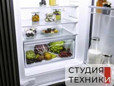 Холодильная камера:Количество полок: 4Количество выдвижных ящиков для овощей и фруктов: 1Количество полок на дверце: 4Полка для бутылок в двери- Подставка для яиц