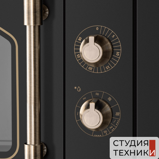 Общие характеристики:- Вид: встраиваемая- Установка: независимая- Дизайн: ретро- Цвет: черный- Цвет фурнитуры: матовое золото- Объем духовки: 20 л- Режимы приготовления: 4- Мощность СВЧ: 800 Вт- Номинальная мощность: 1,08 кВт- Размеры (ВхШхГ): 37.6х59.2х31 см- Размеры ниши для встраивания (ВхШхГ): 36.5х56х29.3 см