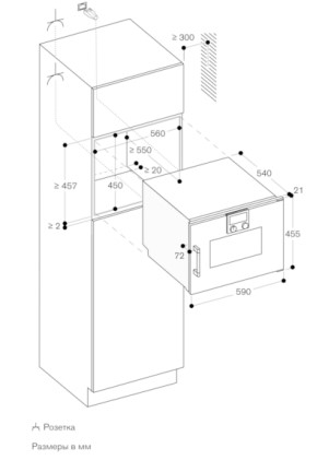 Особенности:- Стационарное подключение к воде- 2 съёмных контейнера для чистой и использованной воды- Внешняя генерация пара- Установка вровень с мебельным фронтом- Дверь открывается в сторону, угол открытия до 1800- Дверь навешивается слева, неперенавешивается- Гриль за стеклокерамикой мощностью 2000 Вт- Автоматическая калибровка точки кипения- Индикатор насыщения фильтра для очистки воды от накипи- Освещение: 1 LED лампа сбоку- 4-уровневые направляюще для противней - Съёмный натяжной фильтр- Программа очистки- Программа сушки- Программа очистки от накипи