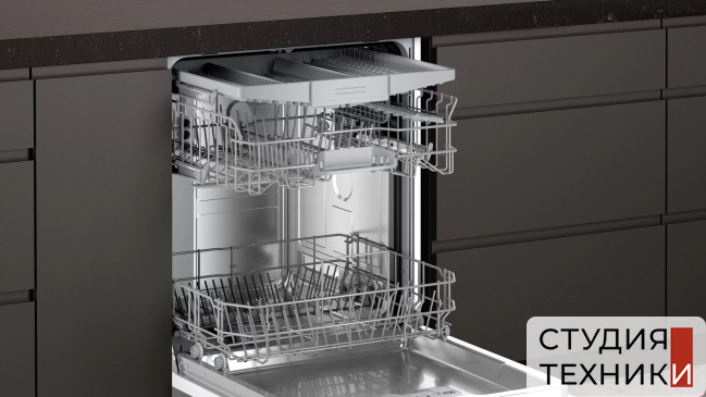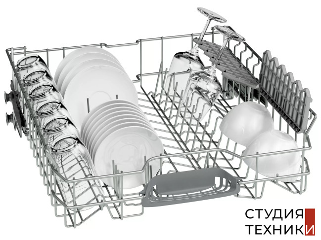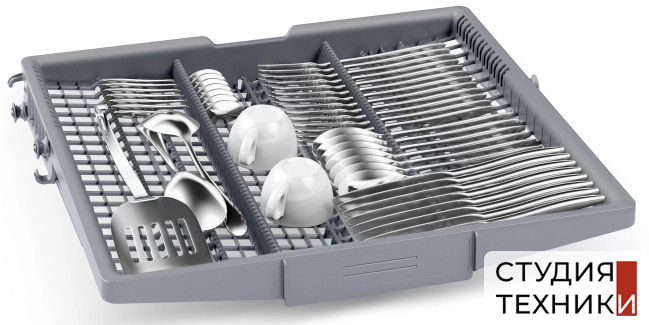 Комплектация:- Переставляемые короба VarioFlex- Переставляемый по высоте верхний короб- Третий уровень загрузки для столовых приборов- Складные направляющие для тарелов в нижнем коробе- Полки для чашек эспрессо в нижнем коробе