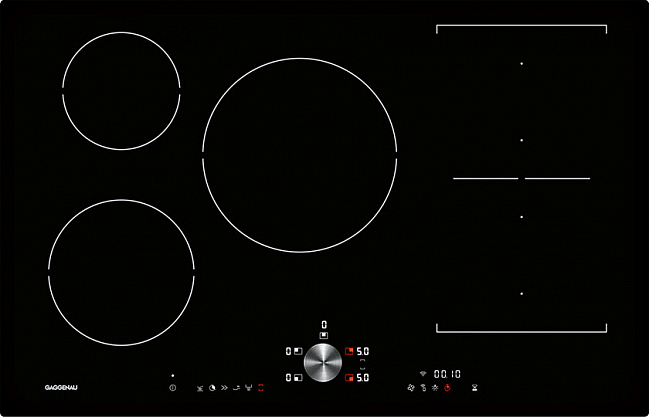 Общие характеристики:- Тип: индукционная- Материал: стеклокерамика- Установка: независимая- Цвет: черный- Количество зон нагрева: 5 - Рамка: вровень со столом- Мощность подключения: 7,4 кВт- Размеры (ВхШхГ): 5.6х79.3х51.3 см - Размеры для встраивания (ВхШхГ): 80х50 см Управление:- Панель управления Twist-Pad со съемным магнитным переключателем- Удобное управление с помощью двух цветных дисплеев (белый/оранжевый)- 17 уровней мощности- Отдельная зона управления вытяжкой- Таймер до 99 минут- Краткосрочный таймер- Меню настройки- Индикация уровня мощности и времени приготовления