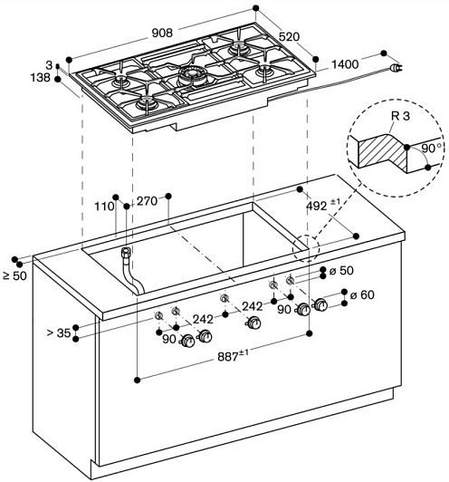 | Рамка: | вровень со столом |