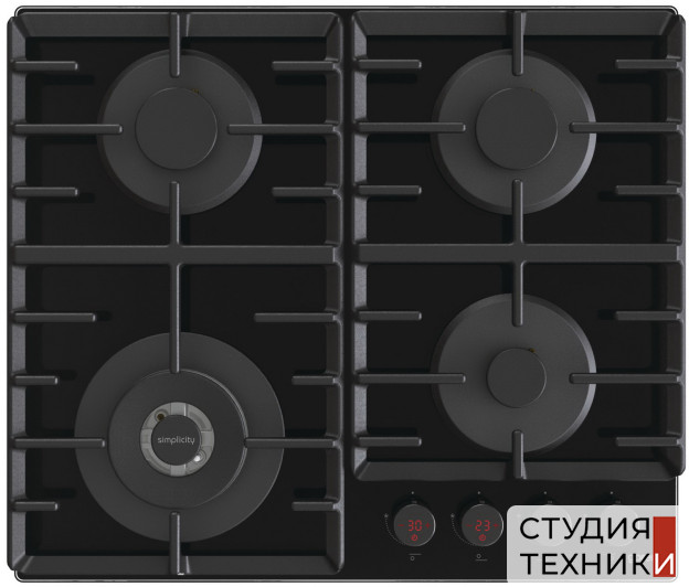 Управление:- Тип управления: механическое- Регуляторы мощности: поворотные регуляторы- Встроенный в ручку сенсорный таймер SimpleOff до 99 минут- Регулировка мощности: бесступенчатая- Расположение панели управления: фронтальное- Электроподжиг: автоматический