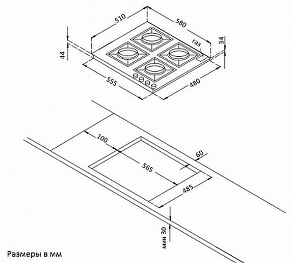 Общие характеристики:- Тип: газовая- Установка: независимая- Материал: закаленное стекло- Количество зон нагрева: 4 шт- Цвет: слоновая кость- Цвет фурнитуры: нержавеющая сталь- Размеры (ВхШхГ): 50х59х52.2 см- Размеры ниши для встраивания (ВхШхГ): 30х56.5х49 см- Вес: 12,2 кг