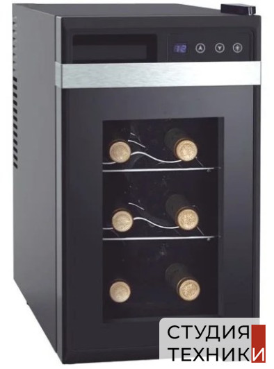Общие характеристики:- Тип: отдельностоящий- Вид: однозонный- Количество дверей: 1 - Количество камер: 1- Вместимость бутылок (0.75 л): 8 шт- Цвет: черный/серебристый- Класс энергопотребления: А- Климатический класс: N (+16С до + 32С)- Уровень шума: 38 дБ- Система охлаждения: на элементах Пельтье- Размеры (ВхШхГ): 50.5х47.5х10 см