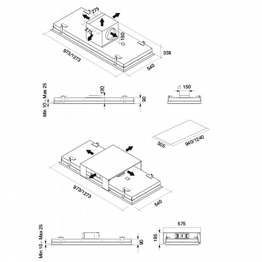 Дополнительная информация: - Светодиодное освещение 4х20 кВт - Металлический жироулавливающий фильтр - съемный и моющийся- Сталь AISI 304: Очевидный выбор в сторону качества. Что всегда отличало вытяжки Falmec от других - это сталь AISI 304, высококачественный материал, единственная по-настоящему нержавеющая сталь, благодаря содержащемуся в ее сплаве никелю- LED освещение: новое светодиодное освещение предлагает оптимальное решение в вопросе света. Крайне низкого потребления - 1 Вт, оно также служит намного дольше других ламп - Потолок должен выдерживать вес вытяжки (45 кг без моторов, 65 кг с моторами) - Stella поставляется без моторов. Существует 4 варианта установки мотора для Stella - KACL.796#4AF (1500 м³/ч) - монтаж мотора на улице - KACL.786#41F (1000 м³/ч) - монтаж мотора на улице - KACL.798#41F (950 м³/ч) – мотор может быть установлен в верхней части изделия или в удаленном месте - KACL.782#49F (800 м³/ч) - Slim версия, плоский мотор для установки с минимальной высотой встраивания - В качестве опции доступны элементы для подсоединения вытяжки к прямоугольным трубам 220x90 мм – переходник KACL.789.- Периметральное втягивание воздуха- Диаметр воздуховода 150 мм- Антивозвратный клапан- Фильтры: Base 289x326 мм- Минимальное расстояние от варочной поверхности: 150 см