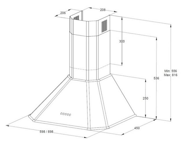 Общие характеристики:- Тип: купольная- Монтаж: пристенная- Режим работы: отвод/рециркуляция- Уровень шума: 54 дБ- Цвет: черный- Элемент декора: золото- Максимальная производительность: 850 м.куб/ч- Количество двигателей: 1- Мощность подключения: 190 Вт- Диаметр воздуховода: 120/150 мм- Размеры (ВхШхГ): 55.6-81.6х89.8х45 см- Вес: 9.4 кг