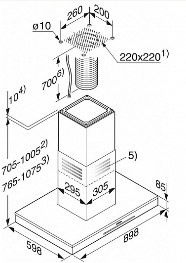 Общие характеристики:- Тип: островная- Установка: каминная- Режим работы: отвод/циркуляция - Уровень шума: 38/63 дБ- Цвет: черный обсидиан- Максимальная производительность: 730 м.куб/ч- Потребляемая мощность: 0,117 кВт- Класс энергопотребления: А- Диаметр воздуховода: 150 мм- Размеры (ВхШхГ): 100.5х89.8х59.8 см- Размеры в режиме отвода воздуха (ВхШхГ): 70.5-100.5х89.8х59.8 см- Размеры в режиме циркуляции (ВхШхГ): 76.5-107.5х89.8х59.8 см