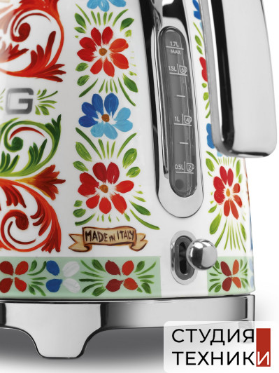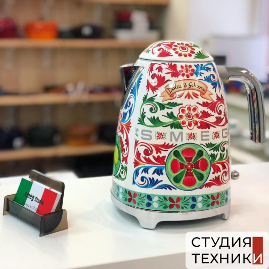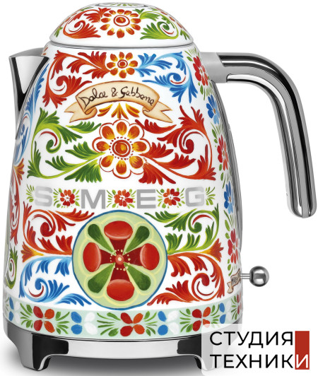 Дополнительная информация:- Электрический чайник Smeg созданный в сотрудничестве с дизайнерами Dolce&Gabbana. На корпусе прибора расцвели золотые лимоны, распустились цветки опунции и зацвели яркие вишни. Всё это элементы сицилийского изобразительного искусства, обрамлённого треугольными узорами под названием crocchi