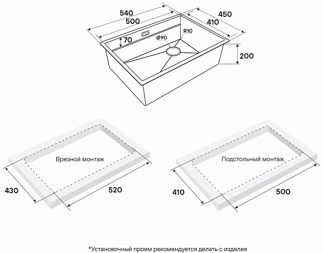 Установка: | врезная, подстольный монтаж |