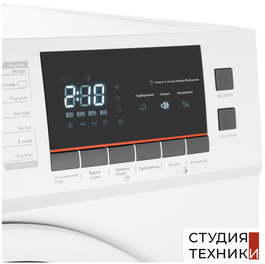 Программы сушки:- Хлопок: Экстра сушка- Хлопок: В шкаф- Хлопок: Под утюг- Быстрая- Синтетика: Экстра сушка- Синтетика: В шкаф- Синтетика: Под утюг- Детская одежда- Джинсы- Смешанные ткани- Спортивная одежда- Рубашки- Мой режим- Теплый воздух- Холодный воздух- Освежение паром Особенности:- Датчик влажности- Высокотехнологичный ворсовый фильтр- Внутренняя подсветка барабана Дополнительная информация:- Дверной упор: справа, перенавешиваемый- Угол открывания дверцы: 180С- Съемный резервуар для слива конденсата