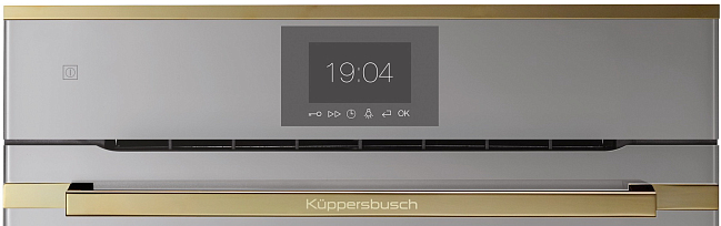 Компактный духовой шкаф Kuppersbusch CBP 6550.0 G4 Общие характеристики:- Тип: электрический- Установка: независимая- Цвет: белое стекло- Цвет фурнитуры: Gold- Объем духовки: 44 л - Мощность подключения: 2.9 кВт- Очистка: пиролитическая (3 уровня)- Размеры (ВхШхГ): 45.5х59.5х55.9 см- Размеры ниши для встраивания (ВхШхГ): 45х56х55 см