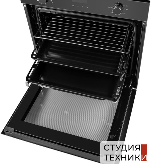 Общие характеристики:- Тип: электрический- Установка: независимая- Цвет: черный- Цвет фурнитуры: черный- Объем духовки: 72 л- Очистка духовки: гидролизная- Температурный диапазон: 50-250 С- Количество режимов работы: 9- Размеры (ВхШхГ): 59.5х59.5х55 см- Размеры ниши для встраивания (ВхШхГ): 58.5-59х55.6-59х56 см
