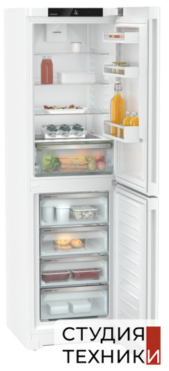 Холодильник Liebherr CNd 5704Общие характеристики:- Тип: отдельностоящий- Вид: холодильник с морозильником- Количество камер: 2- Количество компрессоров: 1- Разморозка холодильной камеры: автоматическая- Разморозка морозильной камеры: No Frost- Полезный объем холодильной камеры: 225 л- Полезный объем морозильной камеры: 123 л- Уровень шума: 38 дБ- Цвет: белый- Класс энергетической эффективности: А++- Размеры (ВхШхГ): 201.5х59.7х67.5 см Управление, функции:- Элементы управления: сенсорные- ЖК-дисплей монохромный, сенсорный экран- Диапазон температур морозильной камеры от -15 °C до -26 °C- Диапазон регулировки температуры в холодильной камере от +2 °C до +9 °C- Система SuperFrost температура в морозильной камере быстро понижается до -32 °С, создавая таким образом «резерв холода», необходимый для замораживания продуктов при максимальном сохранении витаминов автоматическое отключение через 65 часов (макс.) - Автоматическая функция SuperСool температура в холодильной камере поддерживается на уровне + 2 С в течении 12 часов, что идеально подходит для быстрого охлаждения продуктов питания- Функция «Отпуск»Холодильное отделение:- Освещение: светодиодное потолочное- Циркуляционное охлаждение- 4 полки из закаленного стекла, из них 3 регулируемые по высоте - Полка для 3 бутылок- Отделение для бутылок: 1- Контейнер для фруктов и овощей: 1- Количество полок на двери для хранения консервов: 2- Угольный фильтр- Лоток для яицМорозильная камера:- Время сохранения холода при отключении электроэнергии: 24 ч- Мощность замораживания: 10 кг/сутки- Контейнеры выдвижные: 4Дополнительная информация:- Сторона открывания двери: правая, перенавешиваемая- Угол открывания двери 115°- Ролики для транспортировки сзади- Возможность доукомплектовать холодильник SmartDeviceBox для системы умного домаБезопасность:- Сигнализация неисправности: акустическая и оптическая- Сигнализация неплотно закрытых дверей: акустическая и оптическая- Защита от детейСтрана изготовитель:- Болгария