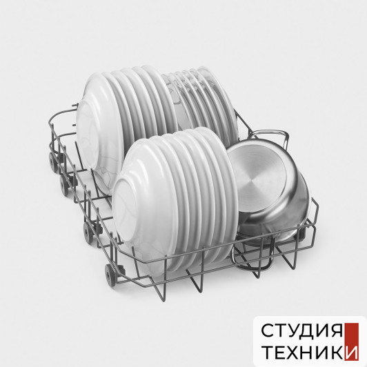 Особенности:- Регулируемая по высоте корзина для посуды- Нижняя корзина с системой Rompi Goccia- Корзина для столовых приборов- 2 корзины- Верхняя корзина: с фиксированными держателями, регулировка по высоте на 2 уровнях с помощью выдвижения- Нижняя корзина: с фиксированными держателями- Слайдерное крепление фасада- Регулируемые ножки