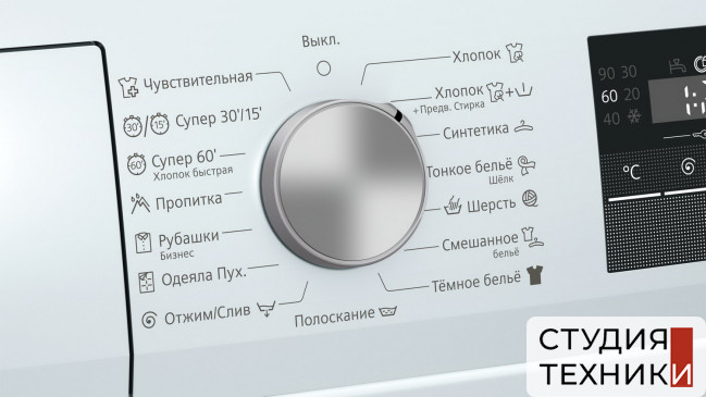 Функционал:- Выбор температуры стирки- Скорость отжима- Замачивание- Предварительная стирка- Дополнительное полоскание- Антисминание- Выбор пятен