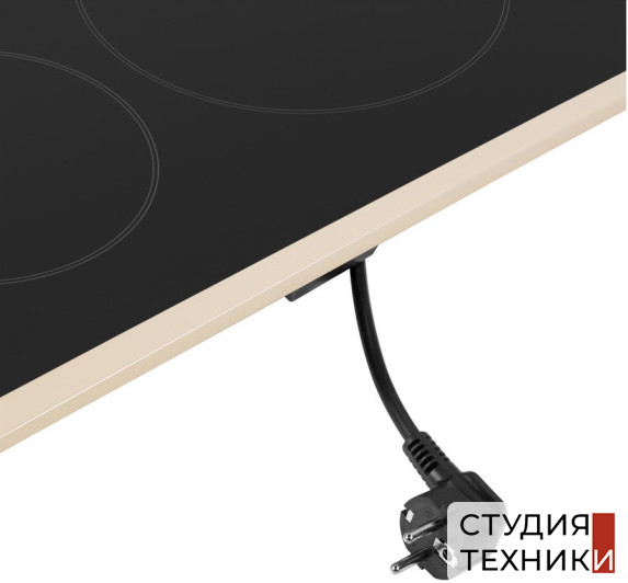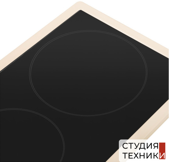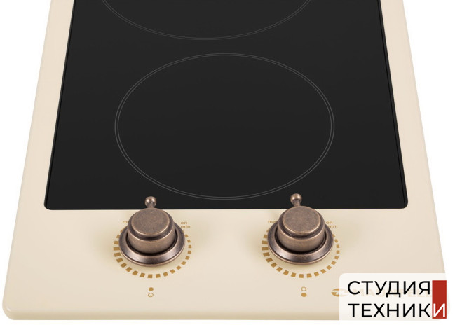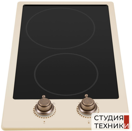 Общие характеристики:- Тип: электрическая Hi-Light- Материал: стеклокерамика- Установка: независимая- Цвет: бежевый- Цвет фурнитуры: бронза- Рамка: без рамки- Количество зон нагрева: 2 шт- Потребляемая мощность: 2.9 кВт- Размеры (ВхШхГ): 7.5х29х51 см