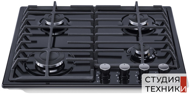 Общие характеристики:- Тип: газовая- Материал: металл- Установка: независимая- Цвет: черный- Цвет фурнитуры: нержавеющая сталь- Рамка: без рамки- Количество зон нагрева: 4 шт- Потребляемая мощность: 7,0 кВт- Размеры (ВхШхГ): 5.1х59х51.5 см- Размеры ниши для встраивания (ШхГ): 49х56 см