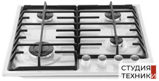 Общие характеристики:- Тип: газовая- Материал: металл- Установка: независимая- Цвет: белый- Цвет фурнитуры: белый- Рамка: без рамки- Количество зон нагрева: 4 шт- Потребляемая мощность: 7,0 кВт- Размеры (ВхШхГ): 5.1х59х51.5 см- Размеры ниши для встраивания (ШхГ): 49х56 см
