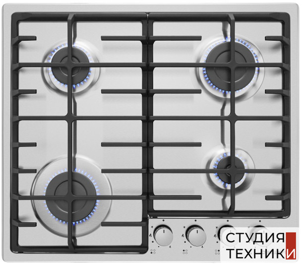 Общие характеристики:- Тип: газовая- Материал: нержавеющая сталь- Установка: независимая- Цвет: нержавеющая сталь- Цвет фурнитуры: нержавеющая сталь- Рамка: без рамки- Количество зон нагрева: 4 шт- Потребляемая мощность: 8,2 кВт- Размеры (ВхШхГ): 5.1х59х51.5 см- Размеры ниши для встраивания (ШхГ): 56х48.5 см