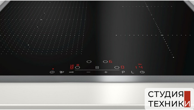 Индукционная варочная поверхность Neff T56BD50N0 Общие характеристики:- Тип: индукционная- Материал: стеклокерамика- Установка: независимая- Цвет: черный- Количество зон нагрева: 4 шт- Рамка: металл со всех сторон- Мощность подключения: 7,4 кВт- Размеры (ВхШхГ): 5.5х58.3х51.3 см - Размеры для встраивания (ШхГ): 56х49-50 см Управление:- Управление TouchControl с таймером- Таймер- Ступени мощности: 17- Цифровая индикация выбранной ступени нагрева- Главный выключатель- Дисплей индикации электропотребления- Определение наличие посуды Функции:- Функция поддержания тепла- Функция PotBoost: обеспечивается мгновенный максимальный нагрев и одновременно предотвращает выкипание, отключаясь раньше, чем происходит нагрев- Cleaning-пауза - кратковременная блокировка панели на 30 секунд- Функция Re-Start: после отключения варочной панели все установки можно вернуть одним касанием сенсора главного выключателя. Воспользоваться функцией restart можно в течении 4 секунд после отключения панели- Режим Quick Start (быстрый старт) Технические характеристики зон нагрева:- Количество зон нагрева: 4 шт, в т.ч 2 из них с возможностью объеденения в зону FlexZone размером до 23.0х38.0 см - 2х23.0х19.0/см до 2.2 кВт (3.7 в режиме PotBoost )- 1х21.0 см 2.2 кВт (3.7 в режиме PotBoost )- 1х14.5 см 1.4 кВт (2.2 кВт) Безопасность:- 2-позиционный индикатор остаточного тепла- Блокировка от детей- Автоматическое защитное отключение Страна изготовитель:- Испания