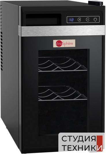 Общие характеристики:- Тип: отдельностоящий- Вид: монотемпературный- Количество дверей: 1 - Количество камер: 1- Вместимость бутылок (0.75 л): 8 шт- Цвет: черный- Класс энергопотребления: А+- Климатический класс: SN - ST (+16С до + 38С)- Уровень шума: 44 дБ- Энергопотребление в год: 92 кВт/год- Система охлаждения: термоэлектрическое (нет вибрации)- Размеры (ВхШхГ): 46.3х25.4х51.4 см