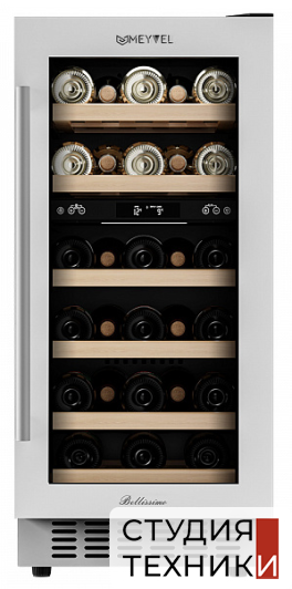 Винный шкаф MEYVEL MV28-KWT2Общие характеристики:- Тип: отдельностоящий, встраиваемый- Вместимость, бут. 0,75л: 28 шт.- Количество температурных зон: 2- Диапазон регулировки температуры: 5-20 C- Цвет: черный/белый- Уровень шума: 40 дБ- Класс энергетической эффективности: А- Годовое потребление энергии: 140 кВт- Размеры (ВхШхГ): 82х38х57.8 см Управление, функции:- Сенсорное управление- Электронный термостат- Светодиодная подсветка- Цифровой дисплей