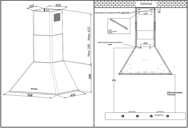 Общие характеристики:- Тип: купольная- Монтаж: каминная, настенная- Режим работы: отвод/рециркуляция- Уровень шума: 53 дБ- Цвет: слоновая кость- Цвет фурнитуры: бронза- Материал корпуса: окрашенная эмаль- Максимальная производительность: 650 м.куб/ч- Количество двигателей: 1- Мощность подключения: 0,146 кВт- Диаметр воздуховода: 120/150 мм- Размеры (ВхШхГ): 28.5-62.5х59.8х43.2 см- Вес: 9,6 кг