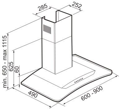 Общие характеристики:- Тип: купольная- Монтаж: каминная, настенная- Режим работы: отвод/рециркуляция- Уровень шума: 61 дБ- Цвет: нержавеющая сталь- Материал корпуса: нержавеющая сталь/гнутое стекло- Максимальная производительность: 950 м.куб/ч- Количество двигателей: 1- Потребляемая мощность: 0,250 кВт- Диаметр воздуховода: 120/150 мм- Размеры (ВхШхГ): 65-111.5х90х49 см- Вес: 17,5 кг
